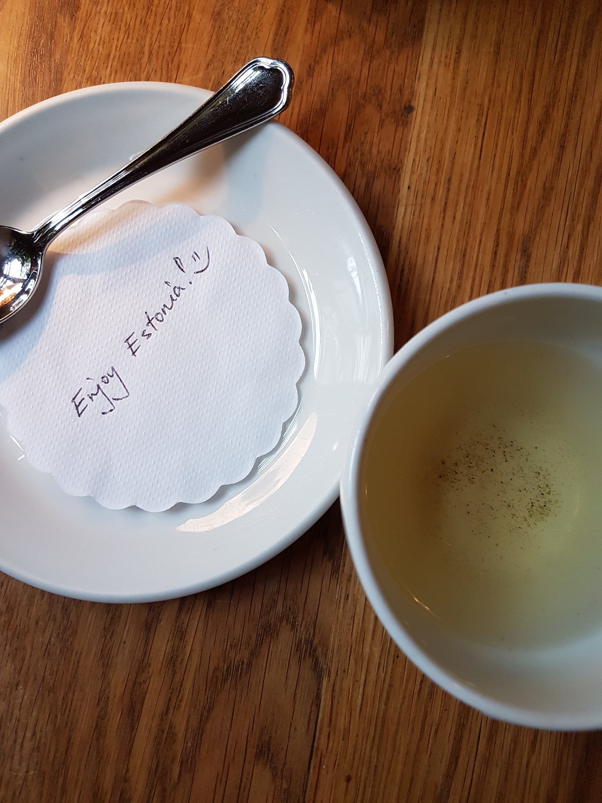 而塔林的餐廳則是個意外發現,Google Map 上看到了這間 Rataskaevu 16 餐廳晚餐想吃卻需要候位一個小時,而 Google Map 上有很多評論評分還接近滿分的餐廳真的非常罕見,所以隔日中午還沒開店就來等候,竟然也已經有人在外頭排隊了,不過因為來的早,雖然被告知後頭有訂位因此用餐時限較短,但也幸運的入座用餐。餐點好吃沒話說,服務人員也很貼心,除了像是王品會在點餐時向你說明菜的特殊口感之外,在飲料墊板、結帳單上都留了些簡短的文字,讓用餐以外更有被關照的感覺。餐廳的廁所也很吸睛,簍空式的地板讓廁所彷彿也成了餐廳景點之一。如果有機會到塔林旅行,Rataskaevu 16 是推薦給大家必吃的一間!